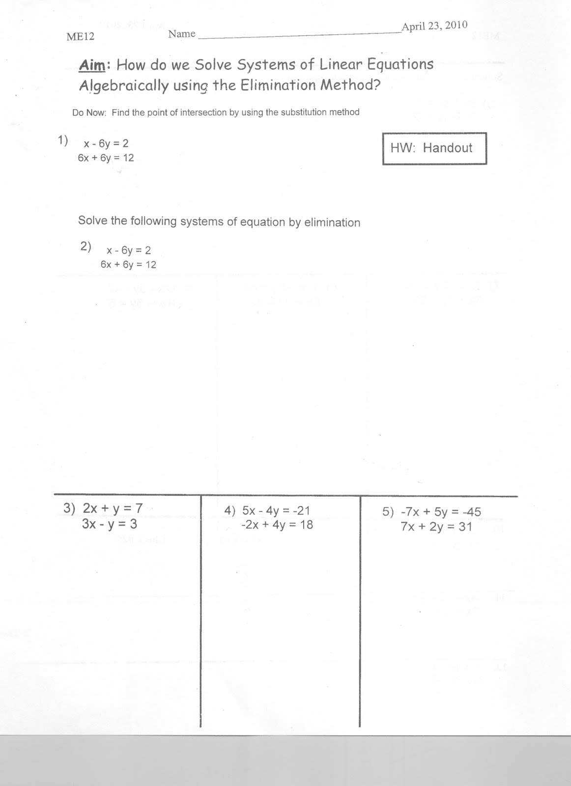Aim: How do we solve systems of linear equations by the elimination method ?